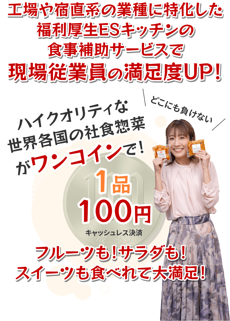 従業員満足度向上を目指すなら+【100円/一品】で問題解決!