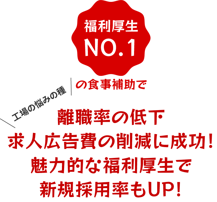 なかなか人材の集まらない多くの工場の中で「美味しくて安い食事補助」は思わず惹かれる条件となります!